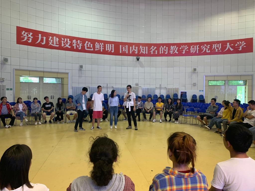 首先,全体2019级新生进行了以“破冰”为主题的团体辅导活动。随着“大风吹”、“有家真好”、“我想认识你”、“我喜欢”四个团辅环节的依次推进,活动也逐渐被推向了高潮,同学们无不敞开心扉,热情互动,均体会到了此次活动的意义所在,获益匪浅。