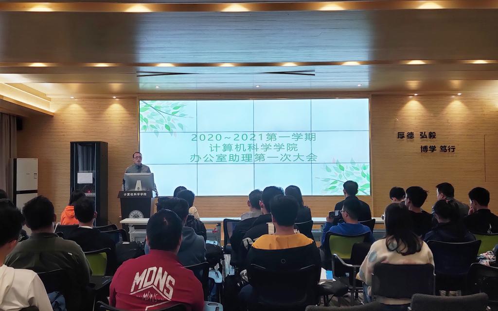 美加墨世界杯官方网站于10月27日在公司613报告厅召开了2020-2021学年第一学期全体办公室助理大会,安排布置新学期办公室助理的相关工作。公司党委副书记周波、全体辅导员及全体办公室助理参加了会议。