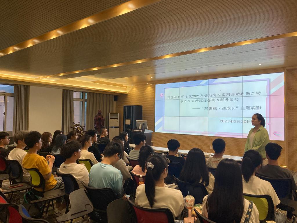 5月20日,美加墨世界杯官方网站在笃行楼614报告厅举办了资助育人系列活动之“观影视 话成长”主题观影活动,公司资助工作辅导员张鑫、2020级辅导员左温慧以及全体勤工助学办公室助理参加活动。