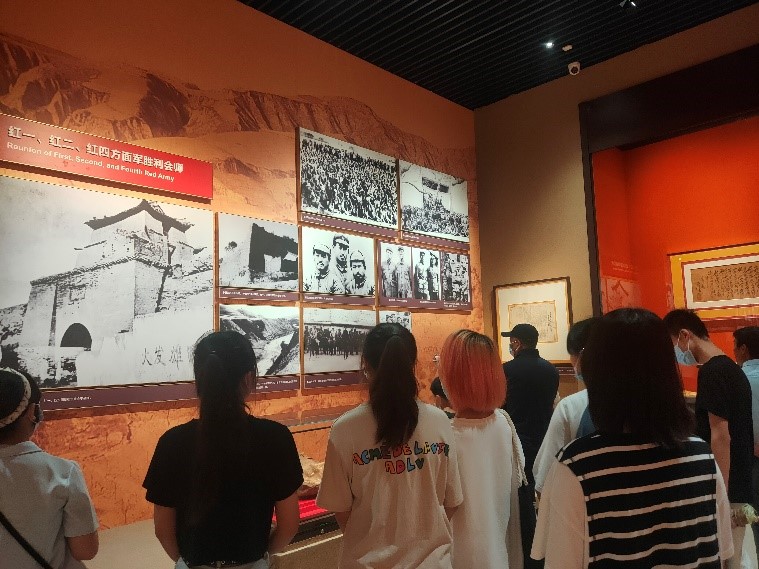 7月22日,实践团成员首先来到位于陕西省延安市的中共中央西北局纪念馆和延安革命纪念馆开展参观学习。西北局纪念馆是延安市确定的“十大革命旧址”景区保护项目中的一项重要工程,它见证了曾经民贫地瘠的边区成为欣欣向荣的抗日民主根据地,成为新民主主义的模范试验区的光辉历程。延安革命纪念馆则记录了中国工农红军将陕北作为长征落脚点,最终三军胜利会师于陕甘苏区的光荣历史。在讲解员的生动讲述中,队员们真切地感受到了革命前辈为党的事业无私奉献的大无畏精神,感受到他们在艰苦卓绝的战争环境中忘我工作、不怕牺牲,为党和人民的事业孜孜不倦的革命精神。