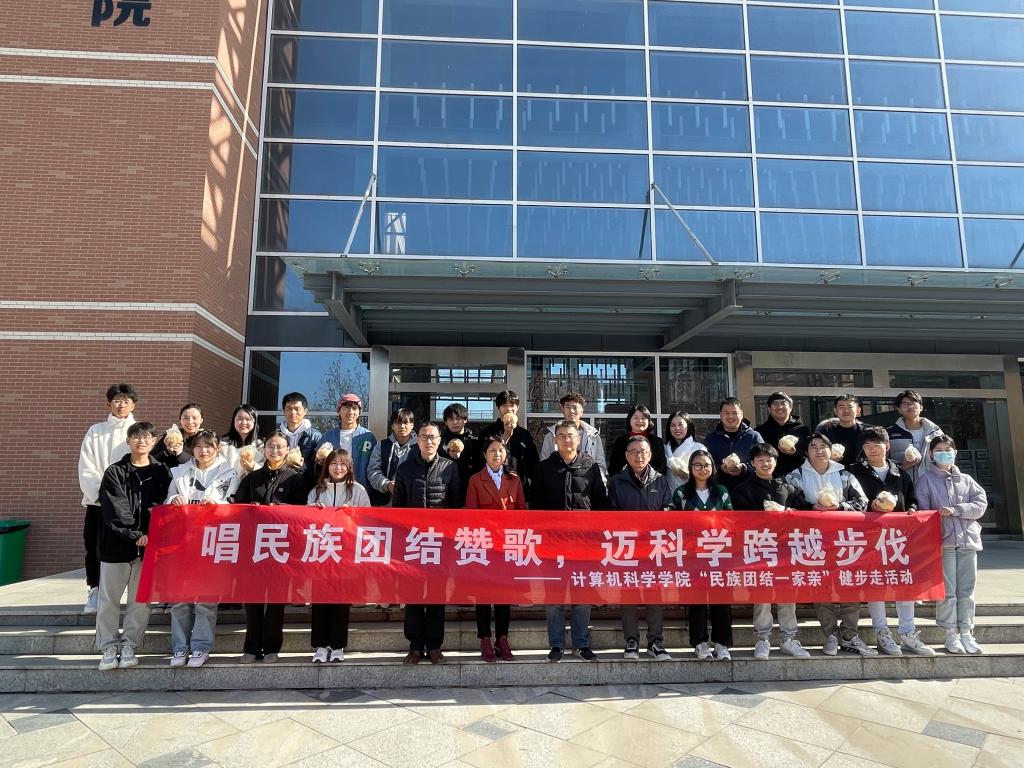 冬日暖阳中,师生齐聚7号楼公司楼下,首先做活动前拉伸准备,并分发石榴,象征着各民族像石榴籽一样紧紧抱在一起。接着,党委书记王雅慧讲话,她说到,我们56个民族共同建设祖国的美好未来,离不开青年一代的努力和拼搏,青年人不仅需要崇高的理想信念,更需要强健的体质体魄。在这暖意洋洋的冬日中,希望同学们能从忙碌的学习中抽出身来,在校园里走走,和身边的同学一道去参观我们美丽的校园。随后,大家一起合影并喊出“石榴籽连心,民族一家亲”的口号后,全体师生从公司楼出发,绕环道进行健步走活动,大家精神抖擞,热情高涨,和身边的同学一道畅谈校园生活。