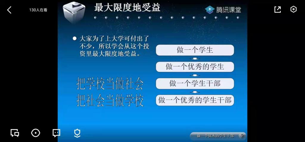 11月18日,程帅老师和左温慧老师为同学们开展了以锻炼·思考·成长——如何完成从高中生到老员工的转变以及国家安全教育为主题的线上团课,不仅教会了同学们如何做一名合格的老员工,也加强了同学们的国家安全意识。