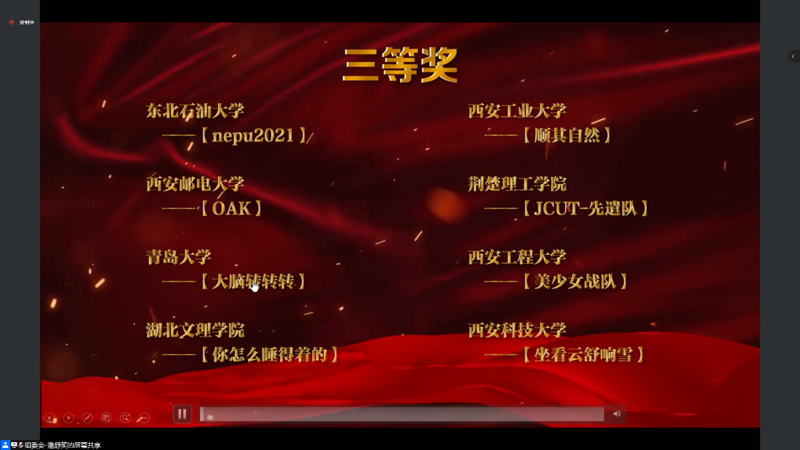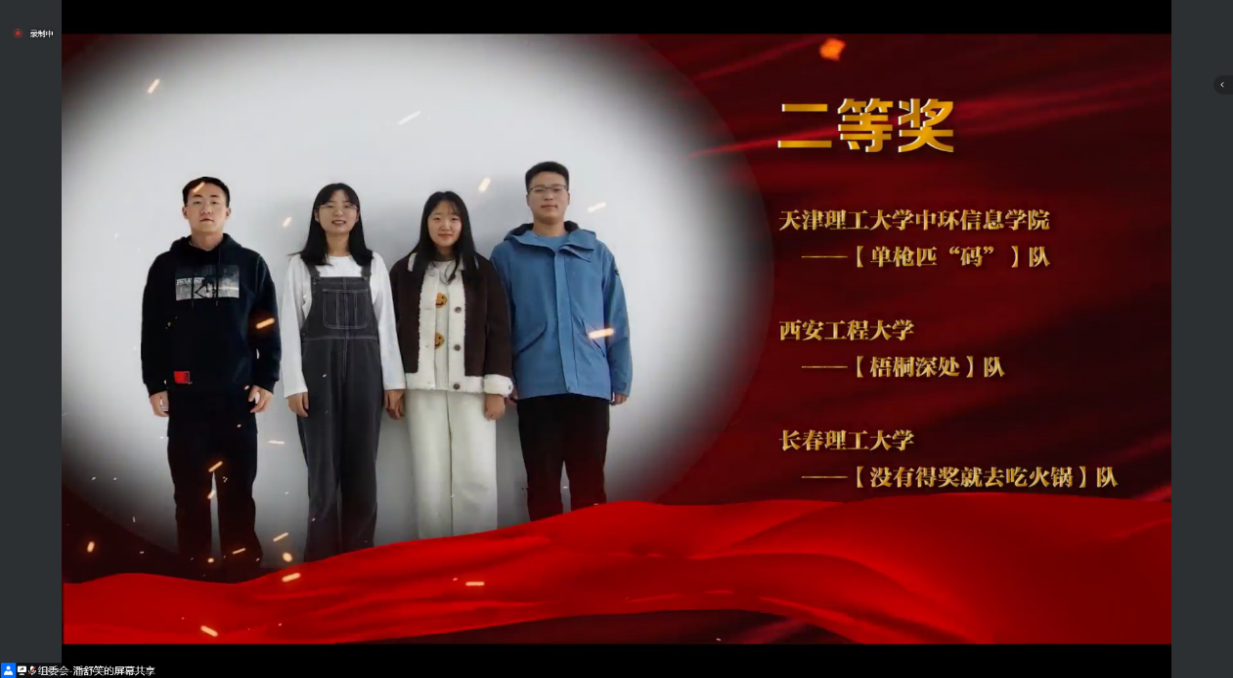 王伟、刘宝宝指导的作品《智能网络数据监控与分析系统》获得全国二等奖;《智能网络数据监控与分析系统商业计划书》、《智慧入侵检测系统商业计划书》、《智慧入侵检测系统》获得全国三等奖。竞赛组委会于2021年11月13日举行了网络在线颁奖典礼。(撰稿:刘宝宝 审核:薛涛)