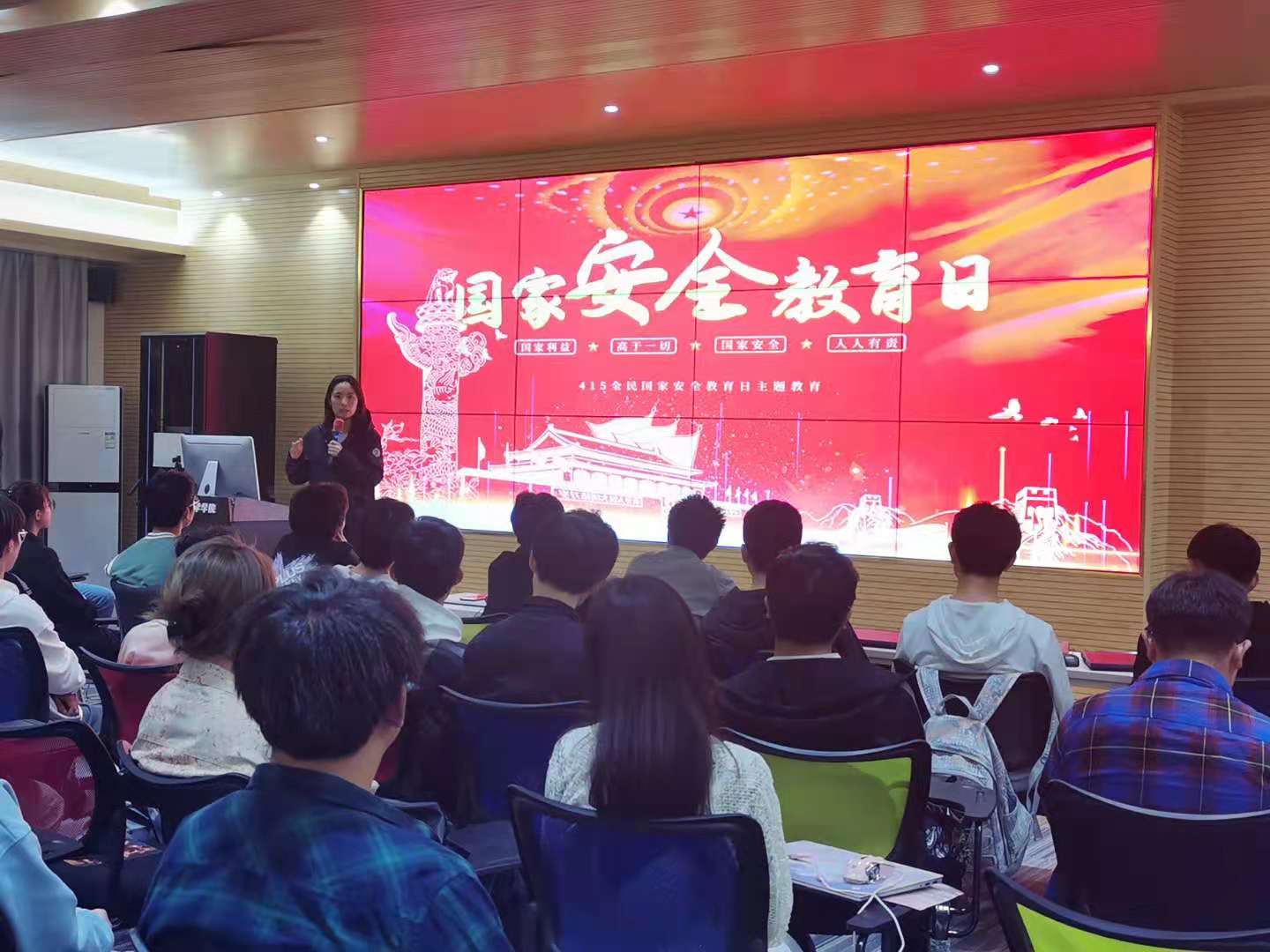 当天下午,在7号楼613报告厅,公司在全体教职工中进行了全民国家安全教育日活动的动员部署,解读总体国家安全观及其重大意义,学习国家安全的基本知识。随后通过内容丰富的PPT组织大家学习了《中华人民共和国国家安全法》、《中华人民共和国反恐怖主义法》、《中华人民共和国反间谍法》。此外,还通过播放警示教育片视频集中展示了我国在维护国家政治安全、意识形态领域安全、国防安全、粮食安全、能源安全、生态安全、产业安全、科技安全、金融安全、社会安全等方面的工作成就和面临的新形势新挑战。