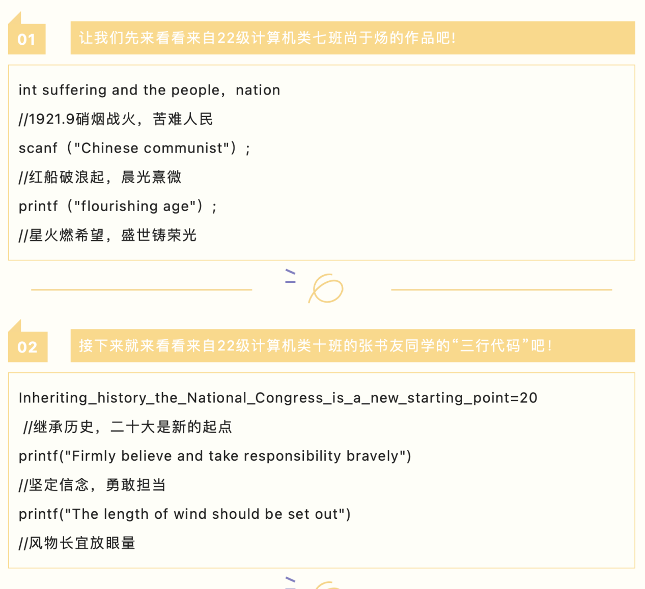 每位参赛者热情高涨,将自己对党的二十大的理解以代码的形式表达了出来。每位参赛者的作品都各具特色,但都能从中看到同学们对党的二十大的深刻理解。这说明同学们对党的二十大有着深刻的认识。在同学们的积极配合下,活动也于10月27日圆满结束了。