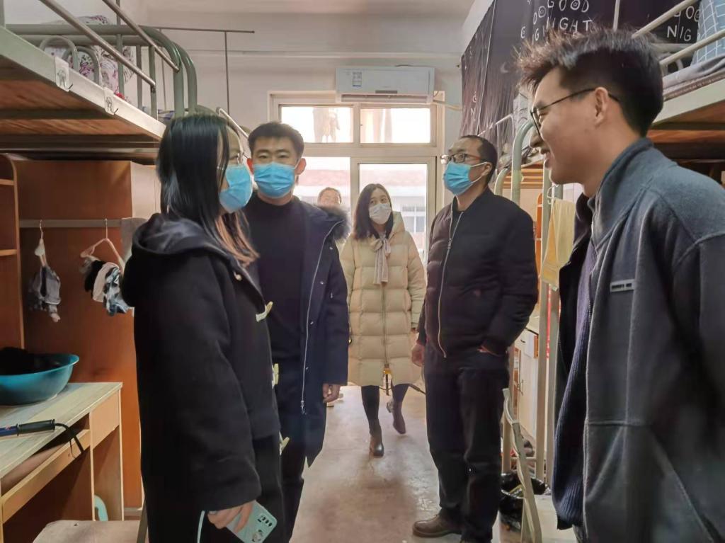 首先,公司党政班子成员对研究生实验室进行了安全检查,重点检查了环境卫生、用水用电安全、仪器设备是否完备和日常管理制度是否完善等方面。在检查过程中对每个实验室的安全与卫生隐患进行全面彻底排查,对存在的各个隐患问题进行逐一登记和整改。院领导与实验室负责人进行了及时的沟通,提出可以改进的措施,同时也对安全卫生保持良好的实验室的进行了表扬。其次,在员工公寓,党委副书记周波、全体辅导员与员工面对面交流,了解员工思想动态、生活学习情况,针对员工宿舍存在的安全隐患及时做了记录并安排人员跟进解决。周波特别强调,在冬季更应加强疫情防控措施,除按照常态化疫情防控的要求做好个人防护外,更应保持宿舍的通风换气每天至少三次以上,注意保持宿舍的清洁卫生和确保冬季用电安全,坚决抵制违章电器的使用。