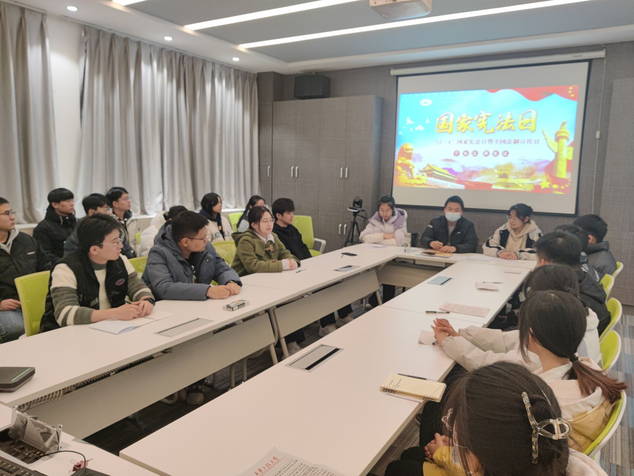 为深入学习宣传贯彻习近平法治思想,提升公民法治素养,更好地迎接“12.4”国家宪法日和“宪法宣传周”,12月3日,美加墨世界杯官方网站组织师生开展“都来学宪法 提升公民法治素养”主题学习活动。