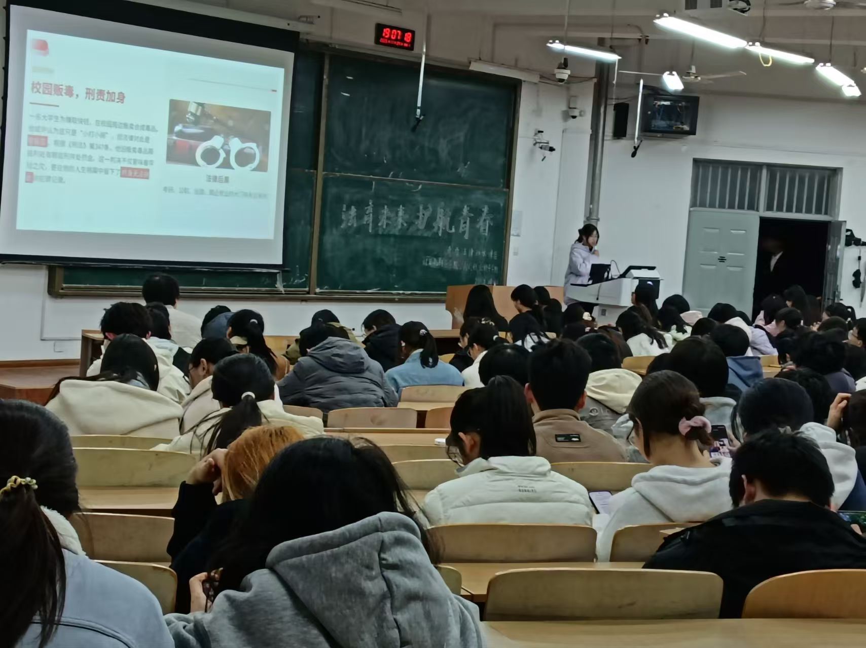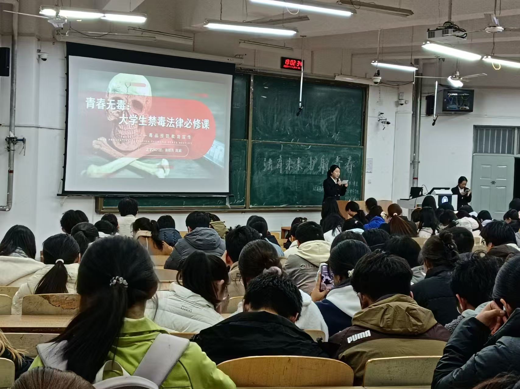 在法律解读环节,主讲人梳理《刑法》《禁毒法》《治安管理处罚法》等禁毒法律体系,明确“毒品无安全剂量、非法持有即违法”的法律底线,详解贩卖、运输、种植毒品等涉毒犯罪的量刑标准——哪怕少量贩毒,也将面临三年以上有期徒刑,数量较大者可判死刑;而吸毒不仅会被行政拘留、强制戒毒,还会留下违法记录,直接影响考研、考公、就业等人生选择。