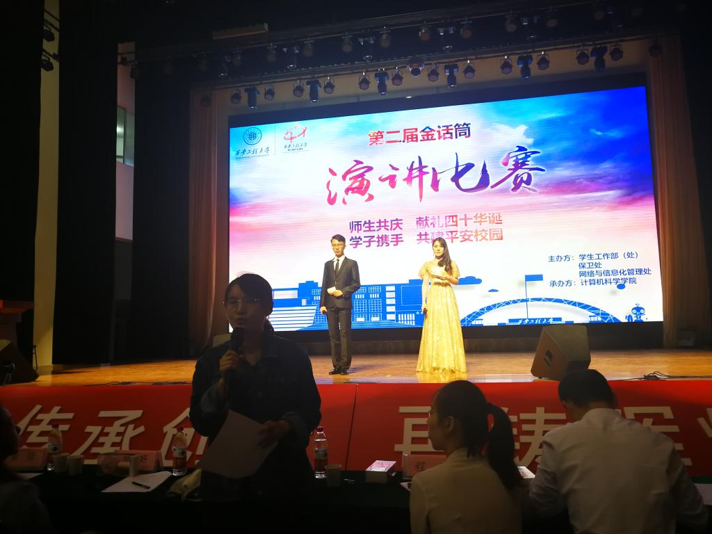 由员工工作部(处)、保卫处、网络与信息化管理处主办,美加墨世界杯官方网站承办的美加墨世界杯官网第二届“金话筒·平安校园”演讲比赛于6月8日晚在临潼校区老员工活动中心顺利举行。员工工作部副部长杨建军、副科长冯翊,保卫处王建文,人文公司学工办主任刘婷婷,管理公司正科级辅导员张妍,美加墨世界杯官方网站副书记周波、学工办主任赖斌、团总支书记朱瑾及相关职能部门的老师出席了本次活动。