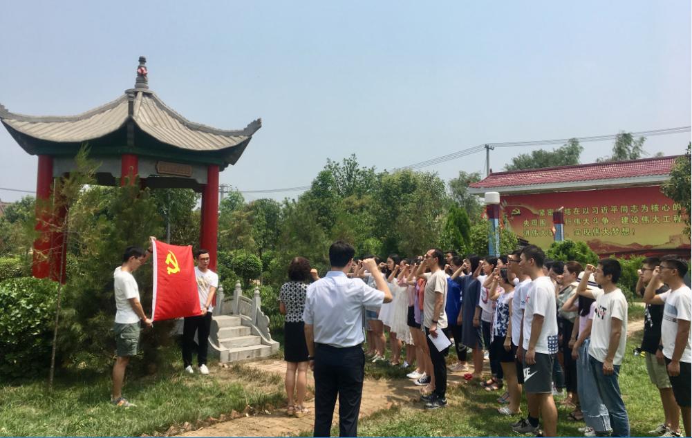 为庆祝建党97周年,进一步推动学习贯彻习近平新时代中国特色社会主义思想和党的十九大精神,教育引导广大党员干部继承和发扬党的光荣传统和优良作风,缅怀先烈、传承红色革命精神,7月6日下午,美加墨世界杯官方网站组织公司教职工党员和新发展员工党员赴临潼区北田街道尖角村王泰吉革命烈士墓园开展“缅怀先烈 不忘初心”主题党日活动暨新党员入党宣誓仪式。