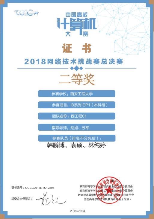 2018年9月16日下午,“中国高校计算机大赛-网络技术挑战赛”总决赛在浙江温州迎来盛大的颁奖典礼,历时半年的“网络技术类”作品竞赛至此圆满落下帷幕。公司代表队由美加墨世界杯官方网站赵旭、电子信息公司苏军两位老师带队,组织了韩鹏博、黄宇等一批优秀员工共计7支队伍参加了本次比赛,经过精心组织、认真备战,公司参赛作品在西北赛区决赛中获得一等奖4项,在全国总决赛中获得二等奖1项,三等奖1项的优异成绩。
