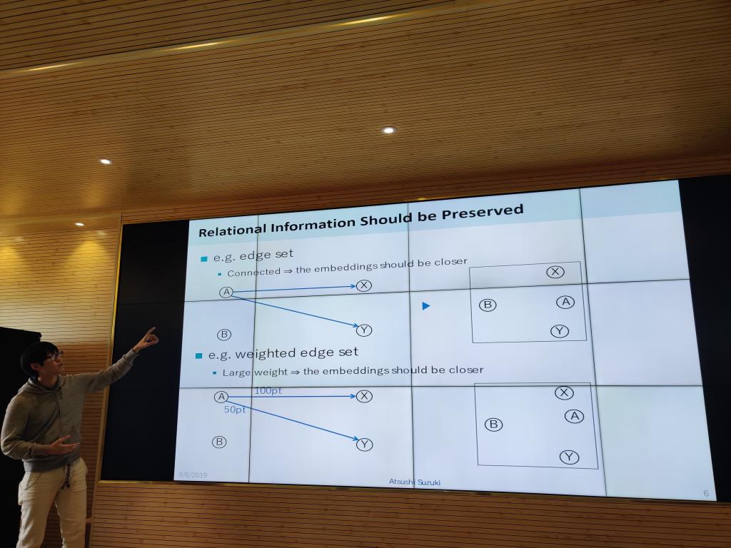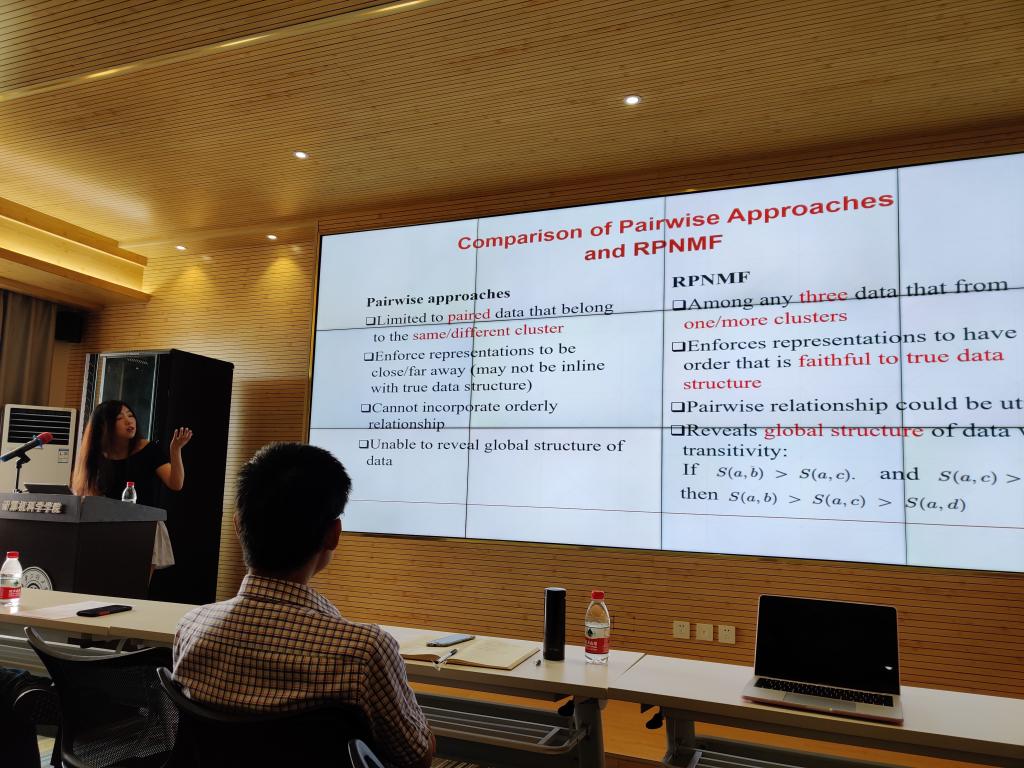 此次报告中,马弘霖博士分享了自己参与智能手环及VR穿戴设备等项目的经历,也介绍了VR和AR未来的发展方向与其它行业深度融合的多个应用实例。王晶博士针对图像分类问题,重点从非负矩阵出发,介绍了高维数据分类及多成分分类等图像分类问题的研究脉络及相关理论。Atsushi Suzuki博士则讲解了双曲空间的基本性质,并详细说明了双曲空间如何解决欧式空间方法在低维空间实现多层次数据的有效嵌入。
