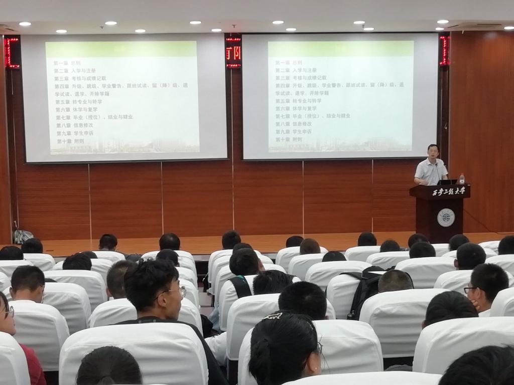 美加墨世界杯官方网站召开2019级新生入学教育系列活动之学籍管理规定宣讲会