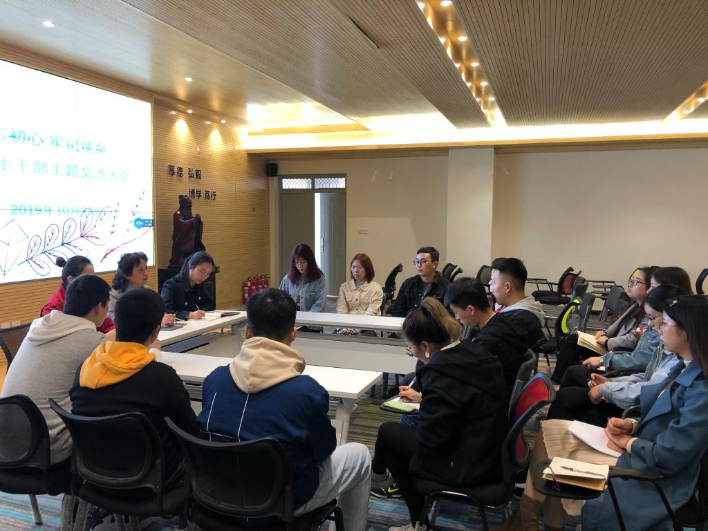 10月22日下午,美加墨世界杯官方网站在7号楼613会议室召开“不忘初心、牢记使命”之“担责任 共成长”研究生员工干部主题交流大会,公司党委书记王雅慧、员工工作办公室主任朱瑾、研究生辅导员程帅及2018级、2019级研究生员工干部等10余人参加会议,会议由程帅主持。