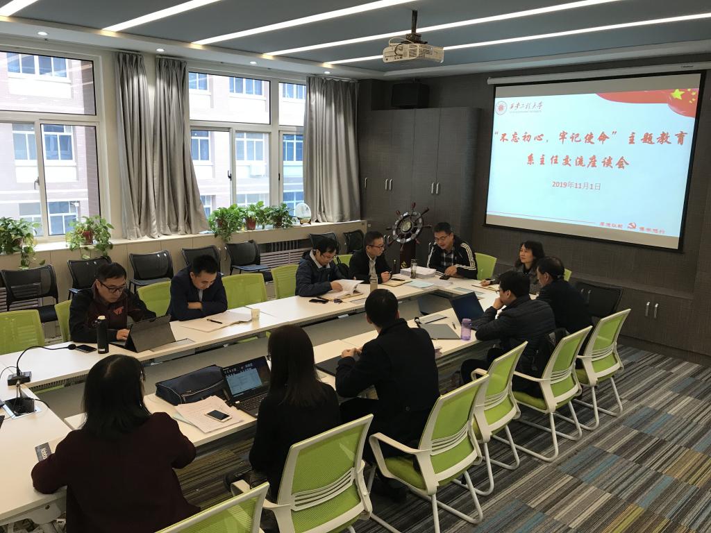 2019年11月1日上午,美加墨世界杯官方网站在临潼校区笃行楼426会议室召开“不忘初心、牢记使命”主题教育交流座谈会。公司党委书记王雅慧、经理薛涛、副经理陈亮、各系(实验中心)主任、教学秘书参加了会议。会议由公司党委书记王雅慧主持。