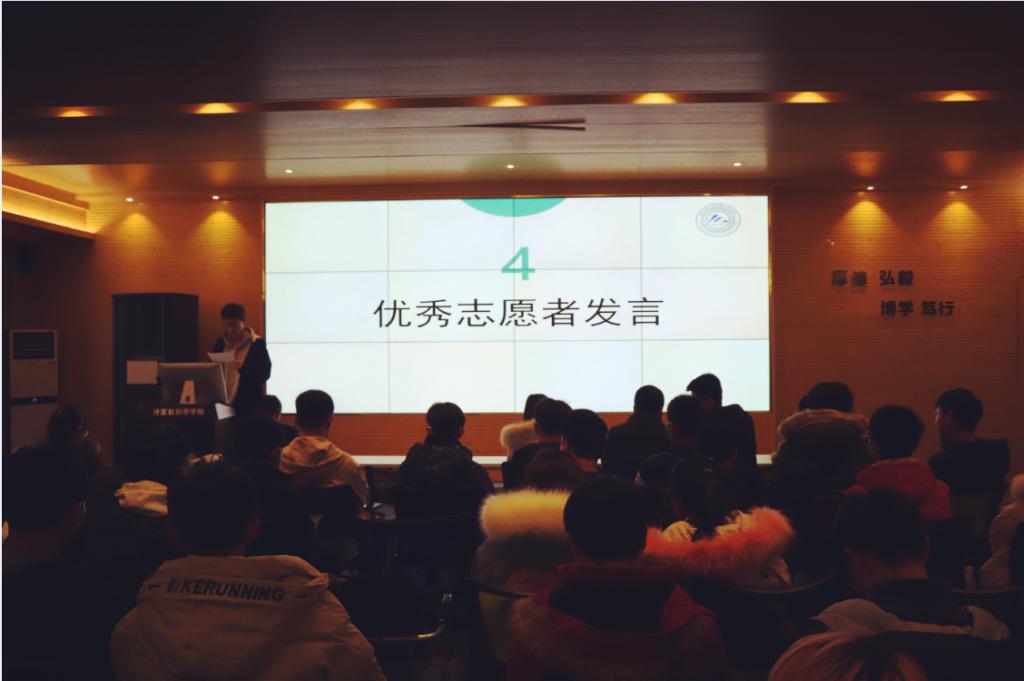 接下来,2019级计算机科学与技术卓越1班员工丁冠星作为青年志愿者代表分享了自己自入校以来参与的志愿服务活动以及收获,他号召全体志愿者积极投身志愿服务活动中,发挥老员工模范带头作用,为公司、公司贡献自己的一份力量。