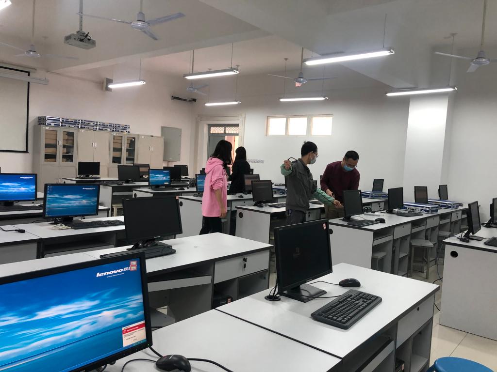 4月13日全天及14日上午,全体实验教师对公司所有实验室进行全面的卫生打扫和消杀工作,确保无死角。分别使用稀释后含有效氯浓度500mg/L的消毒液,对所有桌面进行擦拭,使用75%浓度的酒精对所有计算机键盘和鼠标进行消毒。此外,在完成地面清扫后,再使用稀释后含有效氯浓度500mg/L的消毒液对地面进行清洁。当天下午及15日全天,全体实验教师又对所有实验室进行设备故障排查及检修,并对故障进行处理、报备记录。保证实验设备完好率达到公司实验室管理处的要求,确保正式开学复课后的实验教学工作顺利展开。