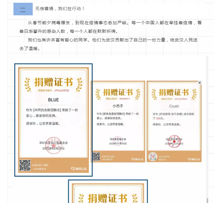 新冠肺炎疫情防控期间,部分受助同学积极参与到疫情防控工作之中,用自己的实际行动传递爱心、回报社会,充分展示了新时代青年的家国情怀,为宣传弘扬志愿精神,鼓励受助员工主动参与到各类志愿服务活动中,为身边人、身边事提供力所能及的帮助与服务,锻炼自我的同时,也塑造自身服务担当的意识,公司开启了志愿服务事迹宣传。