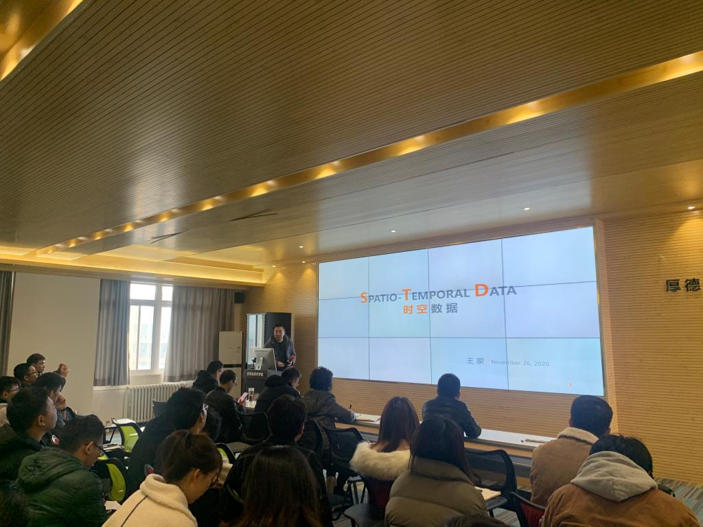 首先,王蒙以《时空数据的管理和查询》为题做了报告,他提到时空数据与我们的生活息息相关,在日常打车、购物等多种场景下都涉及到该领域技术,并针对空间对象查询和分析介绍了反向最近邻算法(Reverse Nearest-Neighbor,RNN)和双色反向最近邻算法(Bichromatic Reverse Nearest-Neighbor,BRNN),结合空间四分法和泰森多边形等技术,能够大大提高空间搜索查询效率。王蒙提到,在科研工作中,学会阅读高质量的学术论文对科研过程有着极大的帮助,同时提醒同学们积极关注高水平学术会议,及时了解国内外领域研究进展,少走弯路。