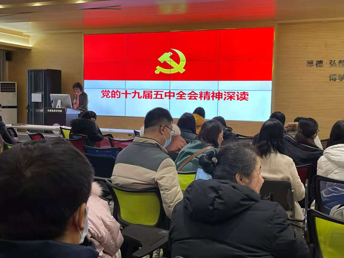 随后,公司党委书记王雅慧对公司党建工作、稳定安全及意识形态工作、党风廉政建设、师德师风以及教职工政治理论学习等工作进行了通报,就各项工作的进一步推进做了安排。同时组织学习了公司《关于加强今冬明春校园消防安全工作的通知》,介绍了公司创建省级“文明校园”和“平安校园”进展情况,强调了稳定安全工作和意识形态工作的重要性,重申了《新时代高校教师职业行为十项准则》,对师德师风提出要求。随后,王雅慧传达了《全国普通高校毕业生就业创业工作网络视频会议》和《学习贯彻党的十九届五中全会精神省委宣讲团报告会》精神,对党的十九届五中全会精神的重要内容进行了解读。她要求大家:一是强化安全意识,守住安全底线,确保公司稳定安全;二是强化师德修养,严守师德规范,做“四有”好老师;三是强化理论武装,深入贯彻落实党的十九届五中全会精神,立足岗位做贡献。
