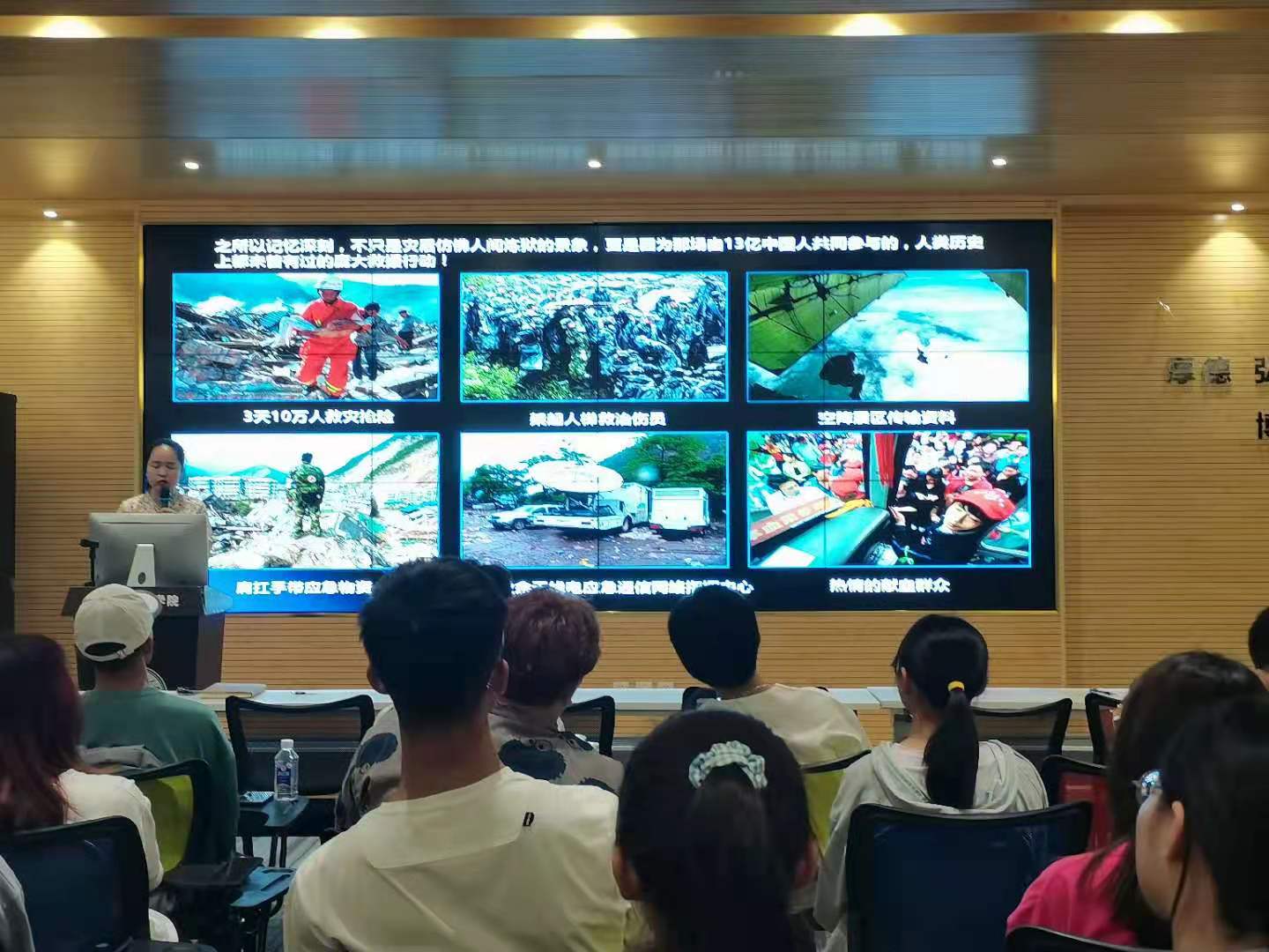 活动伊始,左温慧围绕主题展开讲述。她带领大家通过短视频的形式回顾了汶川大地震中,中华儿女不畏艰险、同舟与共救灾的感人故事。随后和在场同学一起学习了地震逃生的技巧。左温慧要求大家要注重逃生学习,练就逃生本领,日常生活中,要熟悉开关水电及安全通道的具体位置,以备不时之需。