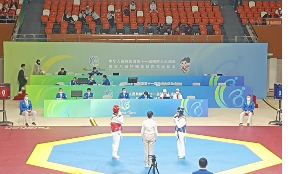 赛场上,运动员们展现出忍耐克己、百折不屈的跆拳道精神,用热血一次次点燃比赛场内的温度。天气凉寒,残奥会却依旧热情不止。抗打击、抗挫折,运动员们为员工们提供了最完美示范。