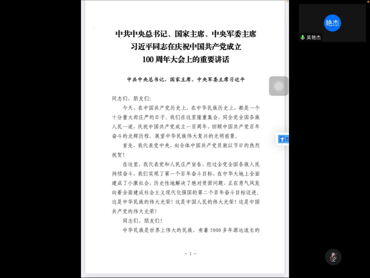本科生大数据党支部专题学习习近平总书记在庆祝中国共产党成立100周年大会讲话精神