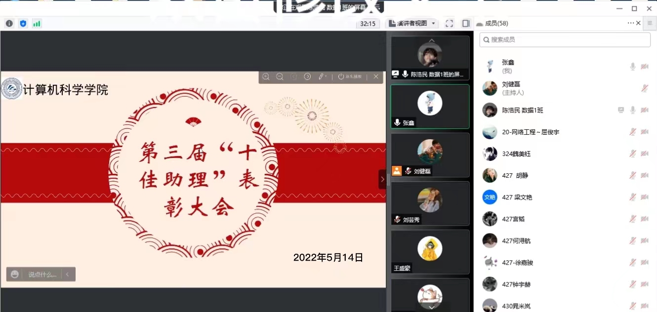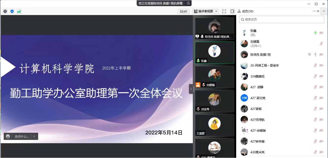 5月14日晚,美加墨世界杯官方网站通过腾讯会议线上召开了勤工助学办公室助理大会暨第三届“十佳助理”表彰大会。公司资助辅导员左温慧、张鑫及60余名勤工助学办公室助理参加了大会。