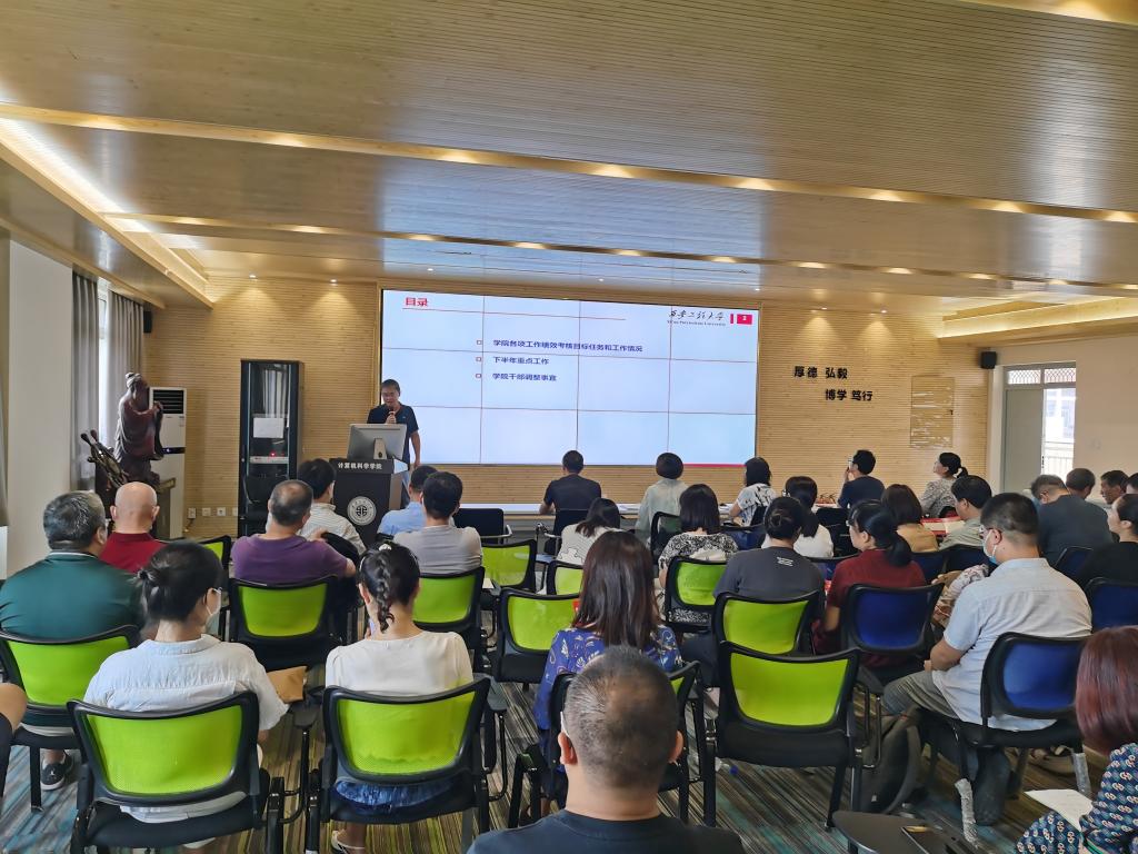 陈亮副经理、周波副书记、经理助理王伟老师也分别从各自分管的教学、员工工作、研究生工作进行了总结汇报。陈亮重点对教学绩效考核任务进行解读说明,并对近期教学工作中期末成绩录入、试卷归档以及下学期教学任务安排等提出要求;周波对暑假员工的教育和管理工作进行了安排,重点强调了导师要对留校进行科研任务的研究生加强安全教育和监督,并安排了假期员工教育管理工作;王伟对研究生招生复试及盲审工作做了总结,希望下半年导师加强研究生开题、中期检查的指导工作,安排了导师三年考核及评优工作。