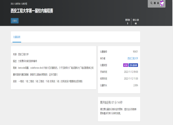 参赛选手使用自己的账号登录比赛系统,用C++、java、python等语言,进行网上答题。大赛一共有5题,参赛者的答案提交后,系统按照每位参赛选手所答题目数量、答题时间、错误率等多个限定条件,依次排出参赛选手的名次,题目通过情况和得分会在计分板上实时公布。经过两个小时激烈角逐,徐浩闻获得了一等奖,焦子逊等5名同学获得二等奖,常露予等15名同学获得了三等奖。赛后,相关负责人在交流群内发布了编程赛题解。