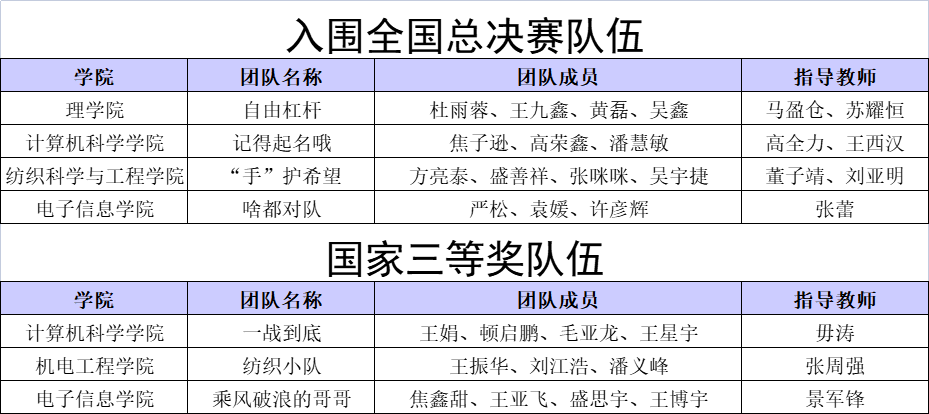 经8月8日至8月25日的国赛评审,公司共4支队伍成功晋级全国总决赛角逐一等奖,分别是理公司马盈仓老师、苏耀恒老师指导的“自由杠杆”团队、纺织科学与工程公司董子靖老师与刘亚明老师共同指导的“手护希望”团队、电子信息公司张蕾老师指导的“啥都对队”团队和美加墨世界杯官方网站高全力老师与王西汉老师共同指导的“记得起名哦”团队。此外,公司有3支队伍荣获国家三等奖,分别是:机电工程公司张周强老师指导的“纺织小队”团队、电子信息公司景军锋老师指导的“乘风破浪的哥哥”团队和美加墨世界杯官方网站毋涛老师指导的“一战到底”团队。这7支队伍在项目展示中表现优秀,技术功底扎实,项目成果具有良好的应用前景,并取得了优异成绩,为公司赢得了荣誉。