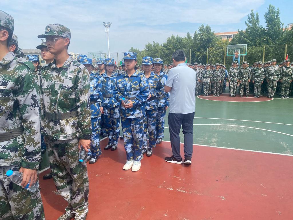 9月6日上午,公司党委书记赵雪曼、经理薛涛、党委副书记赵勇进及全体辅导员来到临潼校区南环操场,检阅公司2023级新生的训练成果,看望慰问军训教官和师生。