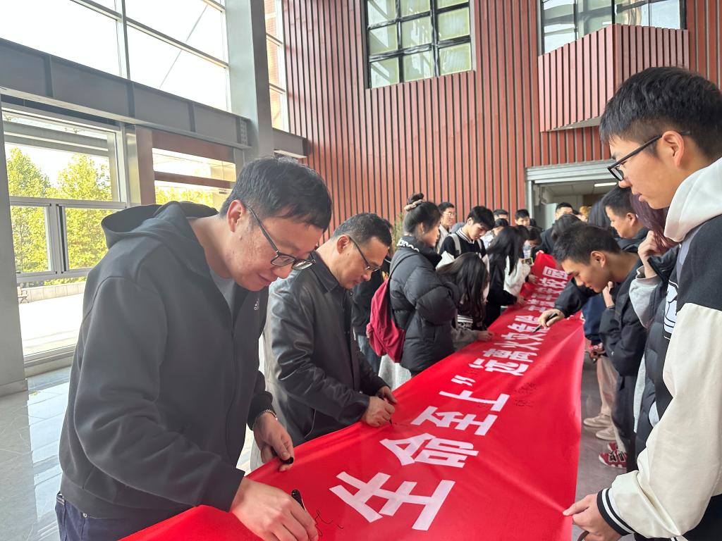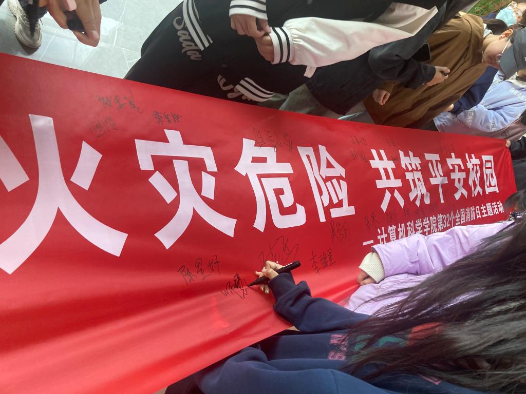 随后,全体参与人员在笃行楼大厅进行了“远离火灾危险,共筑平安校园”主题活动签名,签名的背后表现出同学们对于消防安全的高度重视。