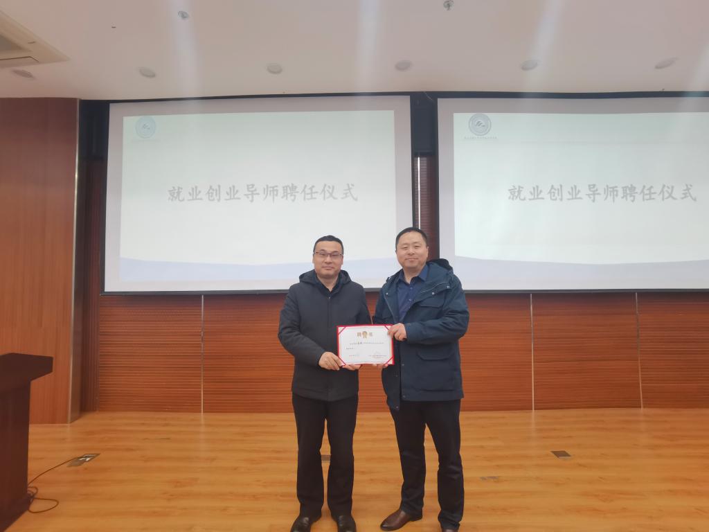 讲座开始前,赵勇进代表公司向蔡鹏颁发了“校外就业创业导师”聘任证书。