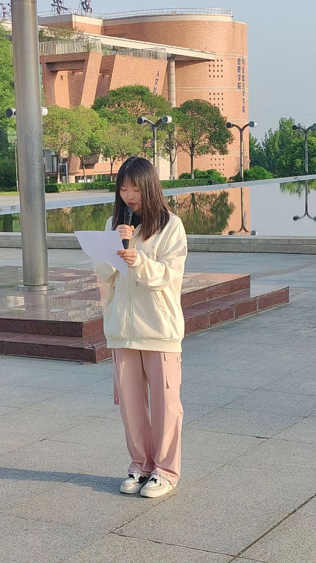 随后,2023级计算机类1班马颢语作为员工代表在国旗下演讲。她结合当下员工状态和自己的成长经历与大家分享了个人对奋斗的三点心得:一是要对现阶段的自己有清晰认识,明白作为员工的首要任务是学好文化和专业知识,提升个人科学文化和思想素质。二是要有清晰的理想目标。无论是考研还是就业,都要重视并了解未来的方向。三是要走出自己的舒适圈,让自己行动起来,拒绝躺平,养成良好的学习习惯,让学习成为自觉,变得高效。
