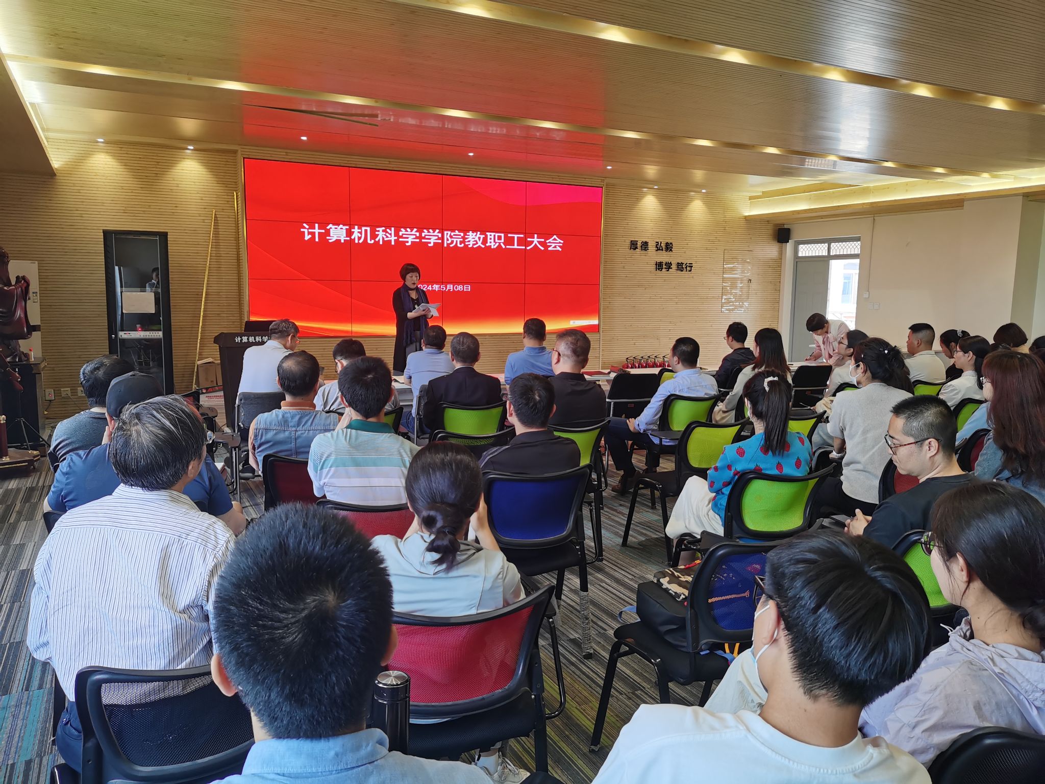 2024年5月8日下午,美加墨世界杯官方网站在临潼校区笃行楼614会议室召开全体教职工大会,就公司产品审核评估和2024届毕业生访企拓岗促就业行动进行再动员再部署。大会由经理薛涛主持。