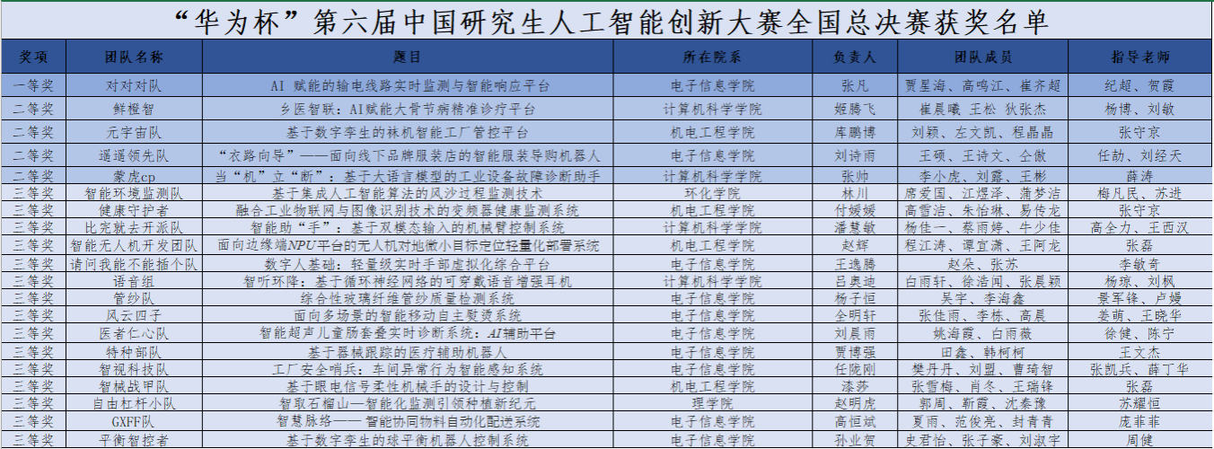 之所以能在本届比赛中取得很好的成绩,主要得益于近年来研工部、研究生院和公司坚决落实公司决策部署,紧密围绕研究生教育高质量发展和团队建设,坚持“研”字当头,以研究生创新实践系列竞赛为抓手,积极推动公司研究生高水平学科竞赛的组织和保障工作。自本届比赛赛程通知发布以来,公司党政领导高度重视,亲自谋划和推进研究生人工智能创新大赛校赛工作,在兄弟公司的大力支持与密切配合下,于5月18日至7月9日承办了“华为杯”第六届中国研究生人工智能创新大赛校内选拔赛。经过精心组织、评审,共推荐45支队伍参加国赛。经9月8日至9月26日的国赛评审,公司推荐的45支队伍从全国参赛的2228支队伍中脱颖而出,其中15支队伍获得三等奖,5支队伍成功晋级全国总决赛角逐一、二等奖。