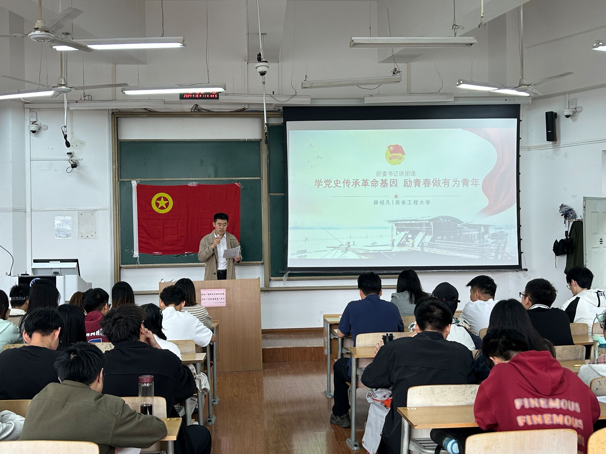 2024年10月10日,美加墨世界杯官方网站在临潼校区B137教室举办2024级新生主题团课,题目是“学党史传承革命基因,励青春做有为青年”。2024级全体本科新生参加了团课,团课由公司团委书记薛绍凡主讲。