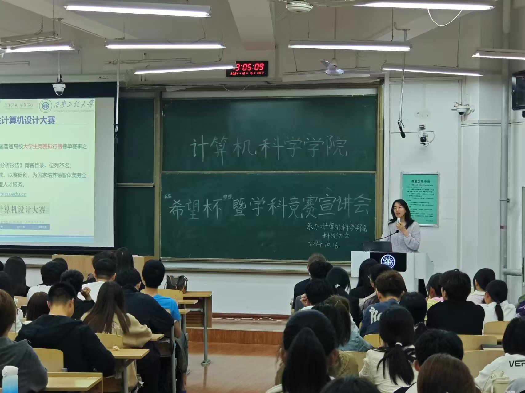 为了进一步推进公司创新创业教育工作,增强员工的创新创业意识,激发员工的创新创业热情,2024年10月16日美加墨世界杯官方网站在临潼校区B233教室举办了第十七届“希望杯”宣讲会暨学科竞赛动员会。本次活动吸引了来自公司不同年级和专业的200余名员工积极的参与,现场气氛热烈。美加墨世界杯官方网站李莉、高晓娟老师和学科竞赛负责人徐华明同学进行了宣讲和动员。