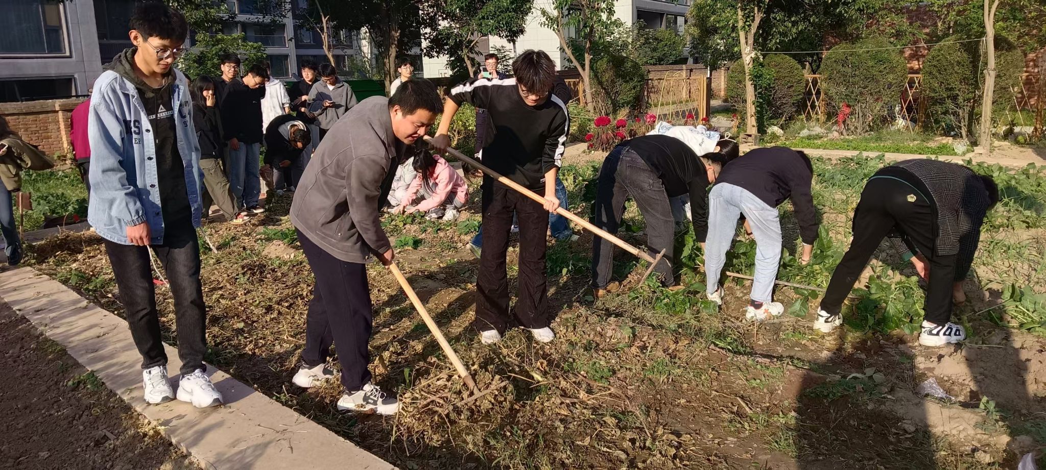为深入贯彻落实习近平新时代中国特色社会主义思想和党的二十届二中、三中全会精神,切实推进公司统一战线、民族团结进步教育工作的开展,同时加强劳动教育,促进员工德智体美劳全面发展,2024年10月23日下午,美加墨世界杯官方网站和马克思主义公司联合举办了“民族团结一家亲,耕读小园同耕耘”——员工民族团结实践暨秋播劳动教育活动,让各民族员工在共同劳动中体会团结的力量,感受中华民族一家亲的浓浓氛围。公司员工工作部(处)副部(处)长李路遥、员工资助中心主任朱成功应邀参加活动,计算机公司党委副书记赵勇进、辅导员和两个公司20余名各民族员工一同参加了活动。