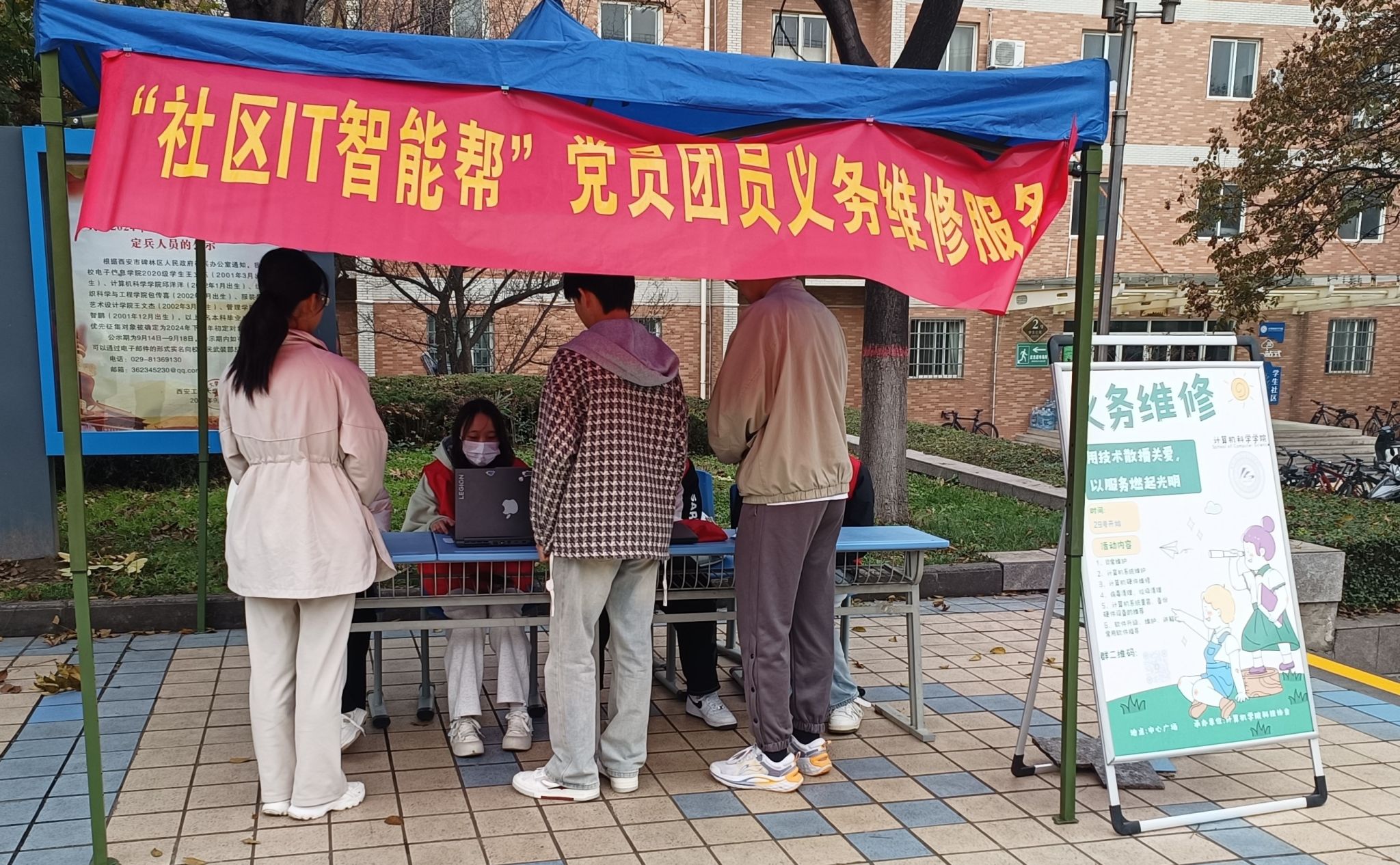 2024年10月26日,美加墨世界杯官方网站“一站式”员工社区“IT智能帮”党员团员义务维修服务队携手公司老员工科技协会和青年志愿者分会在临潼校区中心广场开展了第五次常态化义务维修志愿服务活动。
