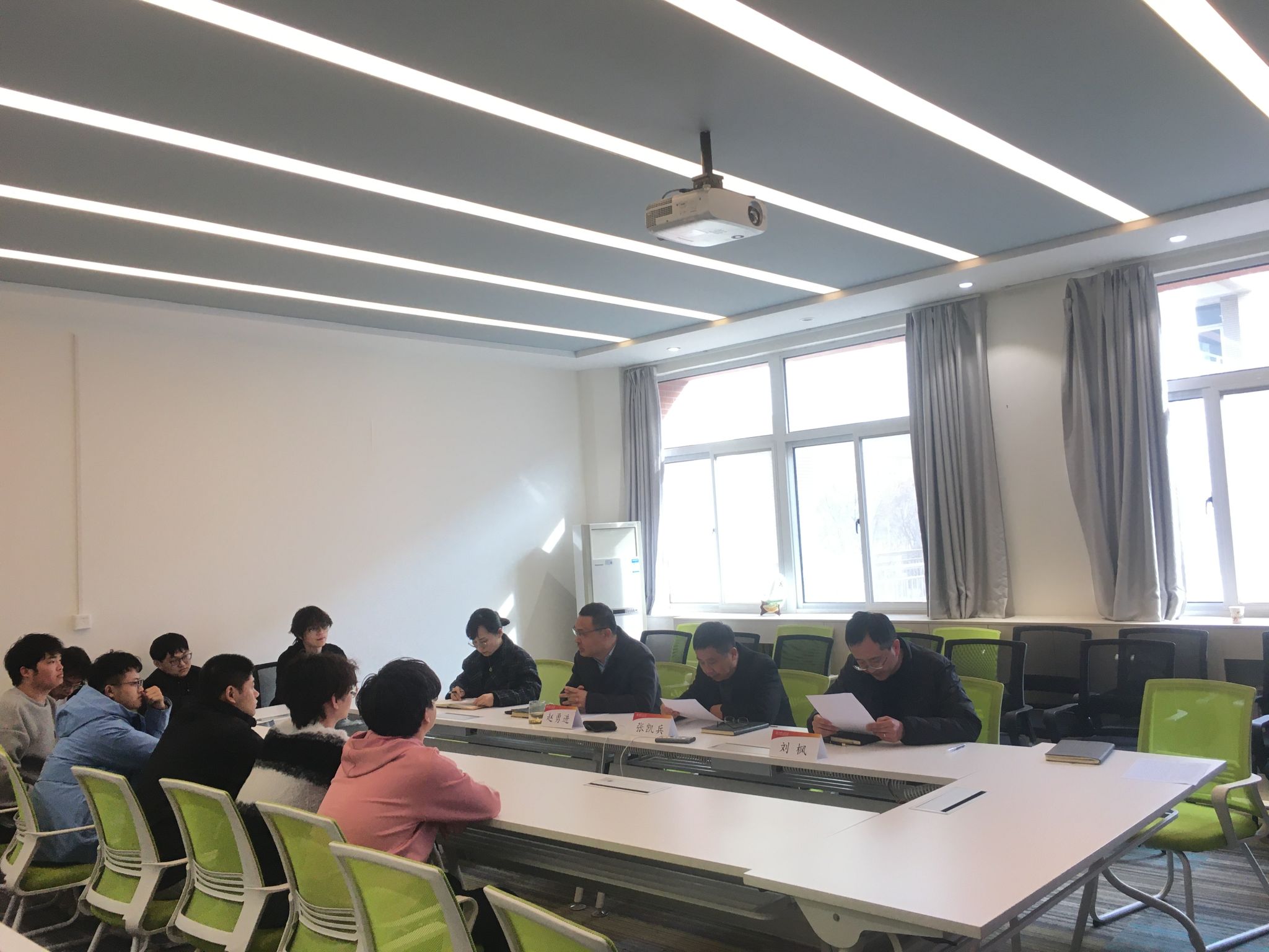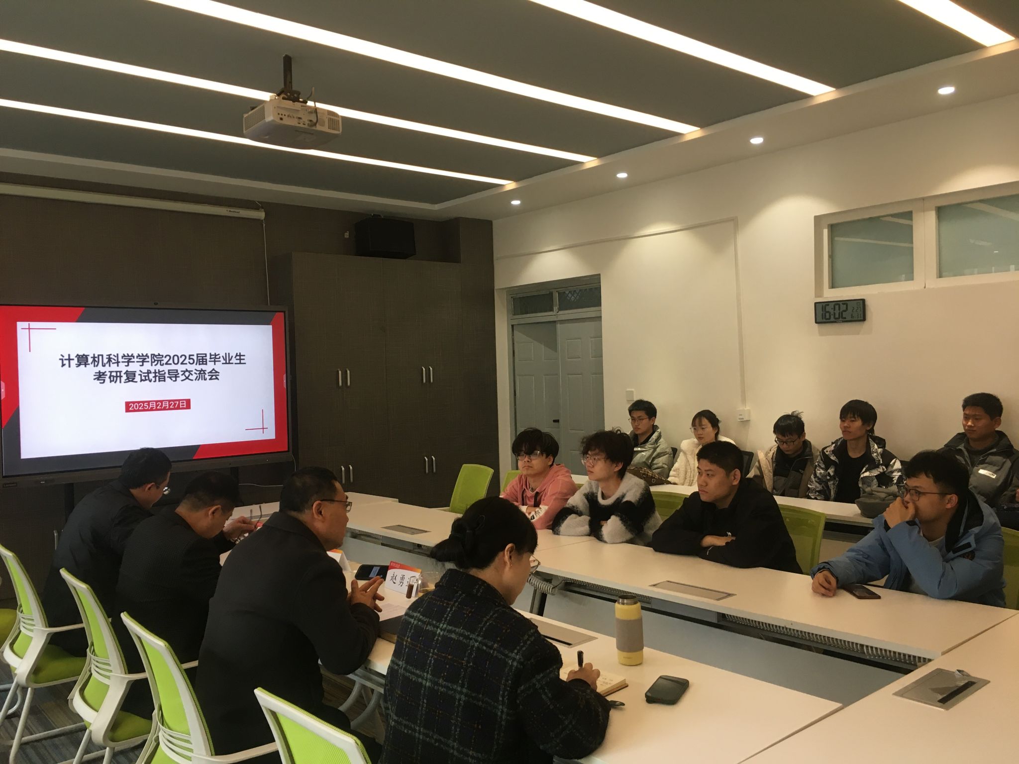 伴随着考研初试成绩的揭晓和国家线的发布,当前考研学子正紧锣密鼓地准备复试环节。为了更好地帮助同学们科学高效准备复试和调剂,助力大家考研顺利“上岸”,2月27日下午,美加墨世界杯官方网站在公司楼426会议室召开了2025届毕业生考研复试指导交流会。公司副经理张凯兵、主管研究生副经理刘枫、党委副书记赵勇进、学工办主任张苹、毕业班辅导员张鑫及50余名考研员工在线上线下参会。会议由赵勇进主持。