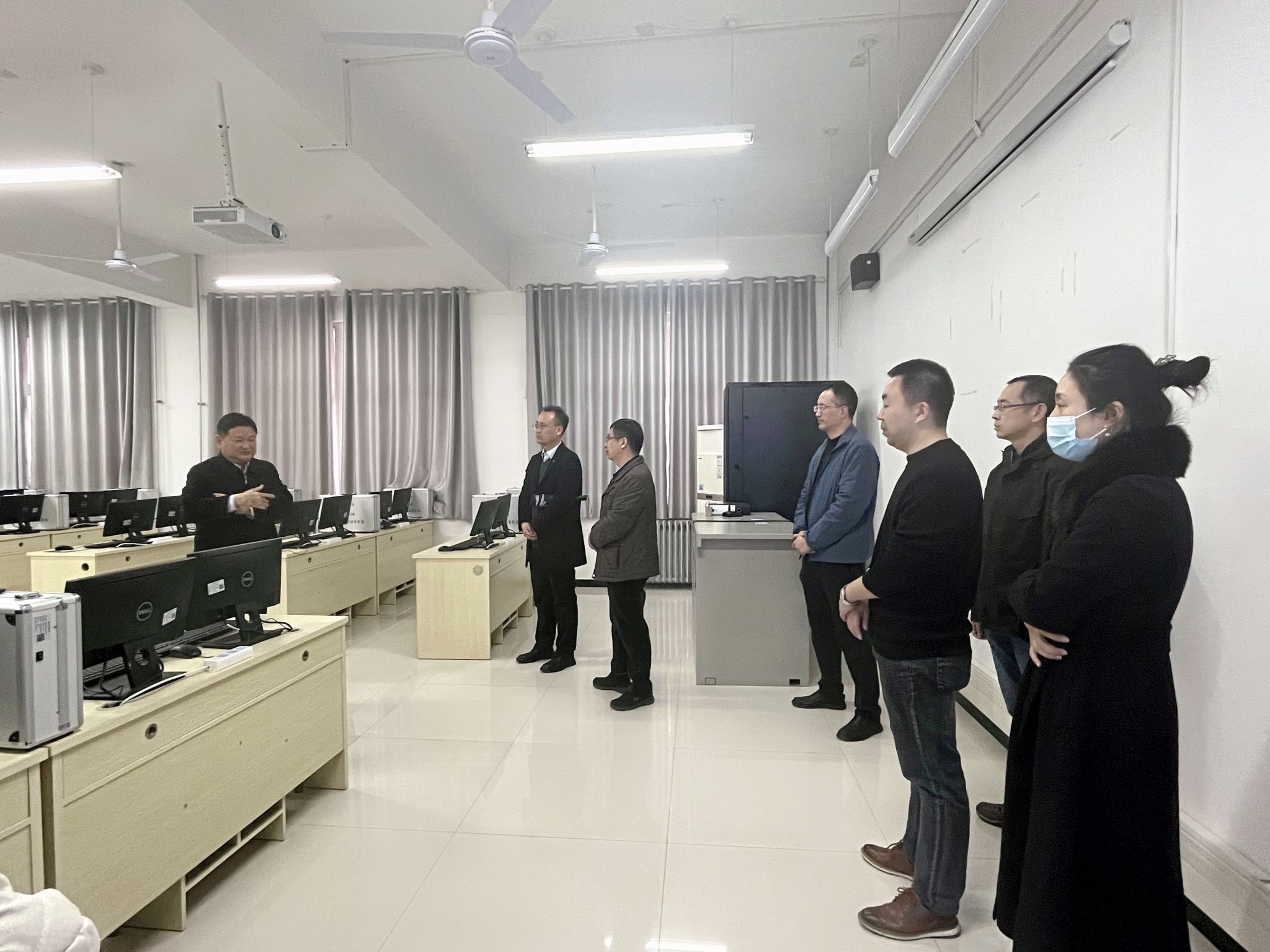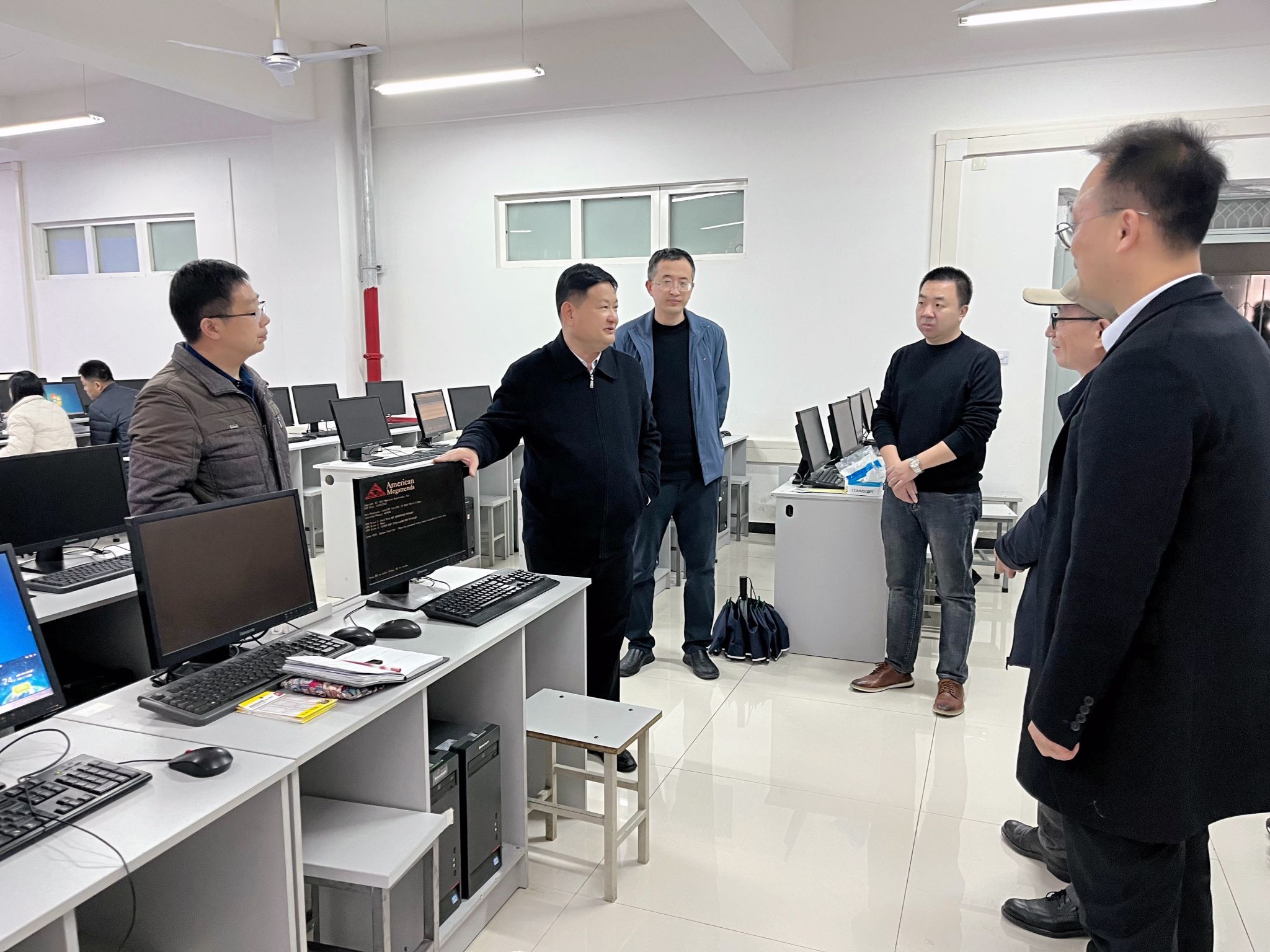 在公司网络安全教学科研一线,马万清实地走访了网络安全运维实训、网络攻防实战靶场等核心实验室,详细了解实验教学平台运行情况。副经理张凯兵系统汇报了示范点建设的阶段性成果,重点阐释了基于“新工科”理念重构的网络空间安全专业人才培养体系和课程模块化改革、双师型队伍建设方面的创新实践,并就下一阶段发展规划作专题汇报。网络空间安全系主任王伟现场展示了真实网络业务场景下的安全技术实践环境平台。