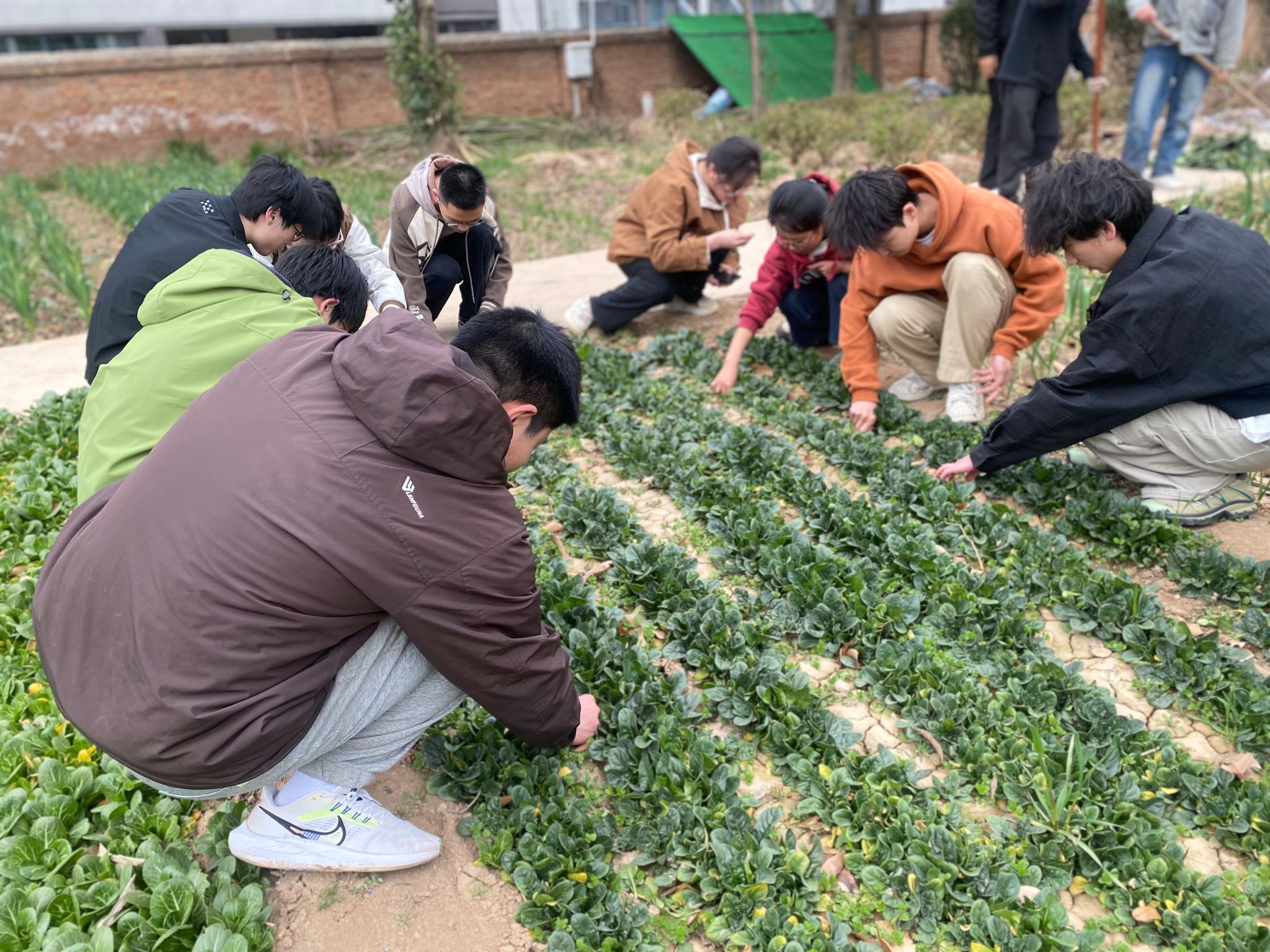 随后,师生们在耕读小园师傅的专业指导下,有条不紊地投入到种菜劳动中。在劳动过程中大家分工明确:有的负责翻整土地,有的负责播撒菜种,有的负责除草,每一个步骤都严谨认真,每一个环节都衔接有序。同时,师傅还详细讲解了犁地、翻地、施肥、播种、浇水的知识,教大家辨识菠菜、小油菜、豌豆等蔬菜,以及如何正确使用农具。同学们收获了前期播种的菠菜、小油菜和豌豆,真切体会到了劳动的辛苦与收获的喜悦。大家纷纷表示“谁知盘中餐,粒粒皆辛苦”,通过亲身实践更加深刻地理解了团结互助的重要性,明白了只有辛勤的劳动才能创造幸福生活的道理。