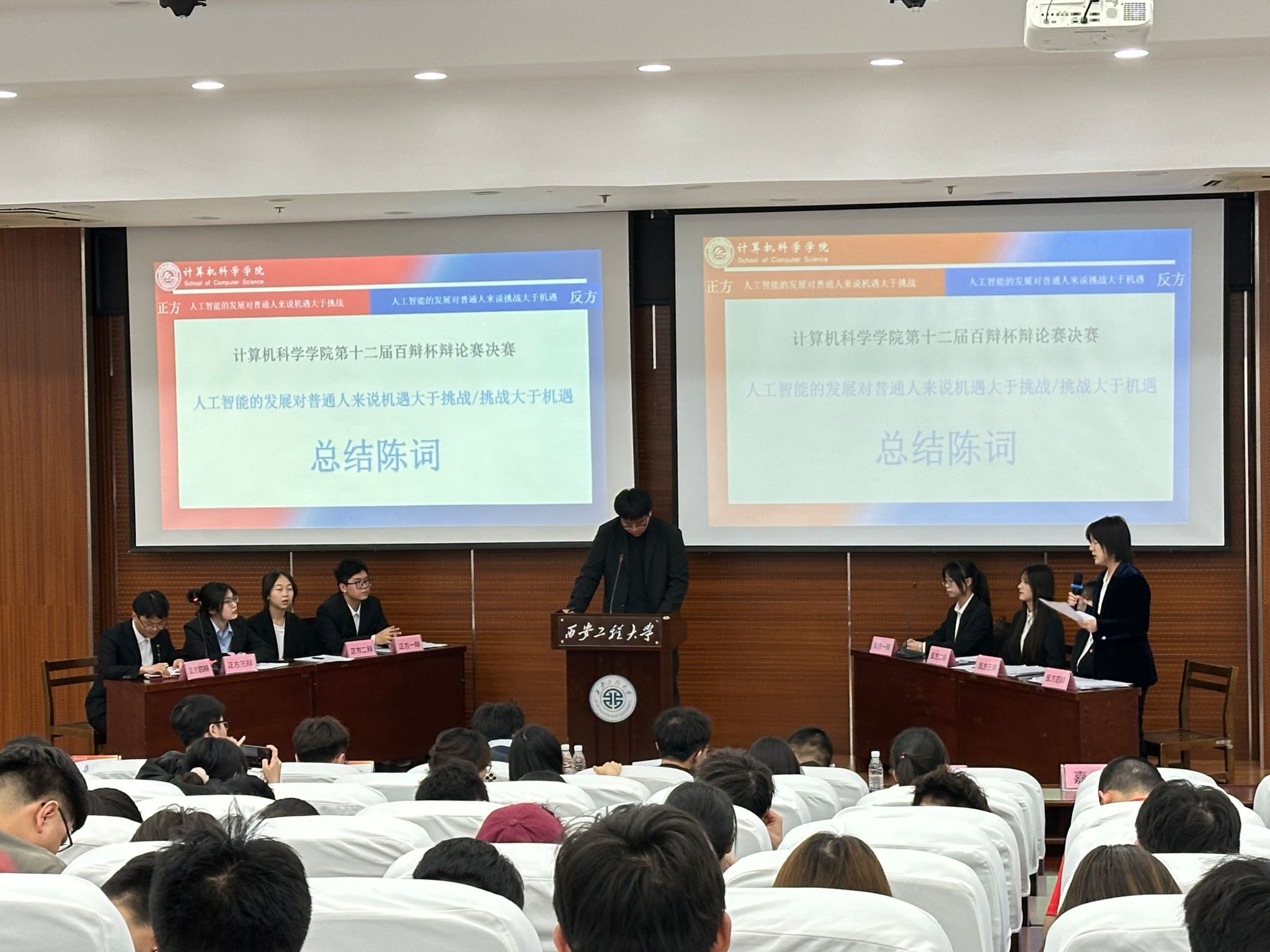 经过初赛的激烈角逐,共有六支队伍晋级本次决赛。本届赛事围绕"人工智能的发展对普通人来说机遇大于挑战/挑战大于机遇""被同化/被排斥更可怕""'断舍离'生活理念能/不能让年轻人更快乐"三大议题展开。辩手们在立论驳辩、自由攻防等环节通过严谨的数据推演、鲜活的案例举证,以缜密的逻辑架构与犀利的语言表达碰撞思想火花,并引发观众对于议题的共鸣。