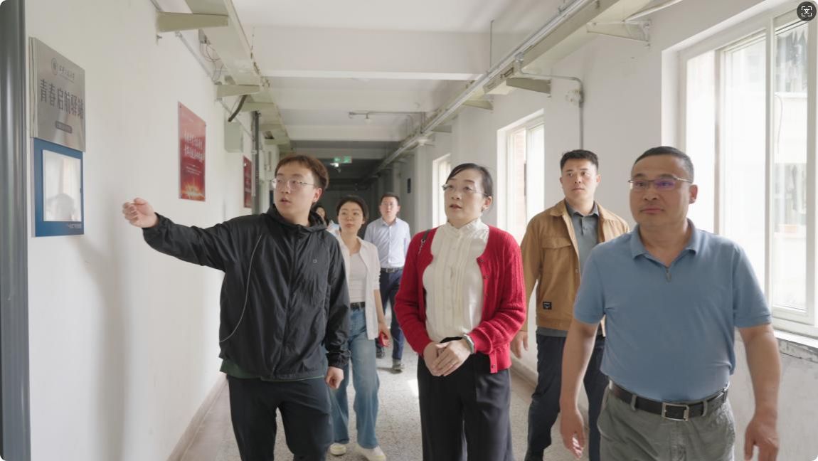 在三楼“党团活动室——青春起航驿站”,刘宇哲重点介绍了公司党建品牌“党建红引领数智蓝”的“党建 + 育人”双轮驱动模式。胡纯详细了解了公司特色党员团员志愿服务活动“IT智能帮”,该活动通过组织专业技术培训、义务维修等活动,切实将党团引领与服务社会紧密结合,有效发挥了党员的先锋模范作用,目前已服务校内师生上千人次,