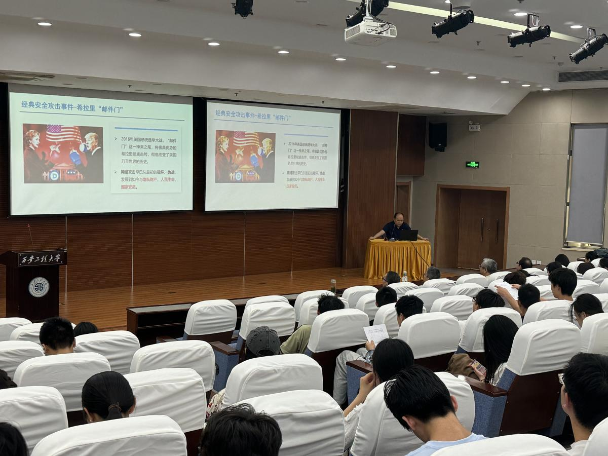 2025年4月30日下午,美加墨世界杯官网第五十七期经纬学术沙龙在临潼校区图书馆二层报告厅举行。本次沙龙由美加墨世界杯官方网站承办,邀请西安邮电大学网络空间安全公司网络空间安全特长班负责人冯景瑜教授做了题为“网络攻防创新实践人才培养经验及成效”的学术报告。美加墨世界杯官方网站班子成员、网络空间安全系骨干教师、实验中心实验室,以及网络空间安全专业本科生200余人参加了本次学术报告会。