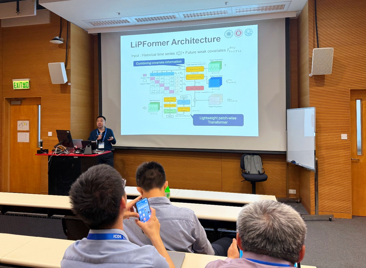 近日,公司美加墨世界杯官方网站王蒙副教授团队最新成果《Towards Lightweight Time Series Forecasting: a Patch-wise Transformer with Weak Data Enriching》在国际顶级会议IEEE International Conference on Data Engineering(ICDE 2025)发表并作学术报告,这是继该团队研究成果在中国计算机学会(CCF)A类数据挖掘顶级期刊TKDE发表后,再度攻克轻量级高精度时间序列预测难题。作为数据挖掘领域三大国际顶尖学术会议之一,ICDE收录的学术论文代表数据挖掘、数据安全与隐私、AI驱动的数据智能、数据管理、数据工程等研究领域的最高水平,是中国计算机学会(CCF)推荐的A类顶级国际会议。