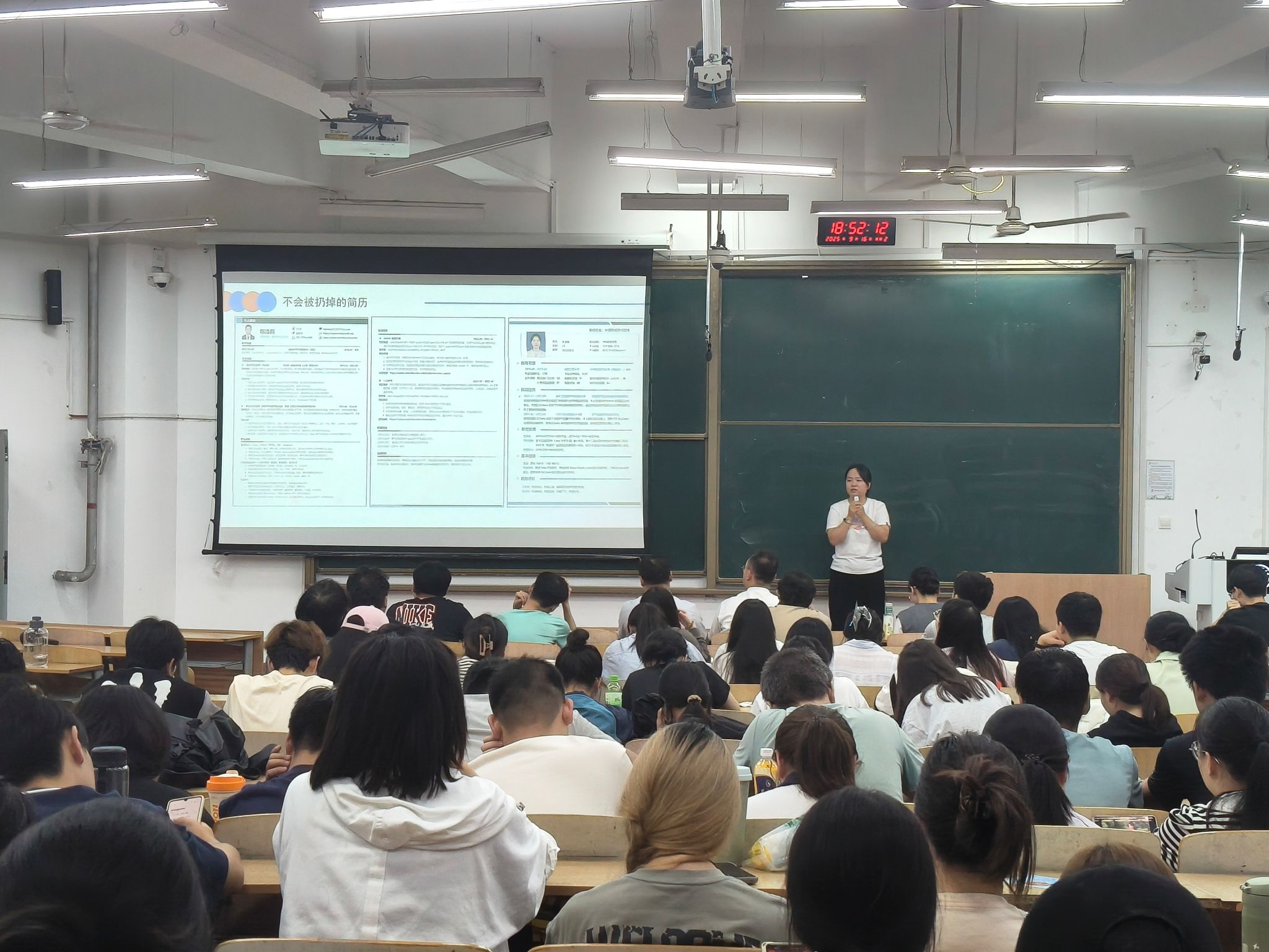 随后,左温慧结合往届毕业生就业典范案例,细致讲解简历各模块制作要点,进一步突出员工就业优势。她还全面介绍了近期公司与公司组织的招聘会及对接用人单位情况,鼓励员工主动投递简历、参与笔试面试,并公布了各专业就业咨询、简历诊断辅导员和联系方式,为员工咨询对接搭建便捷渠道。