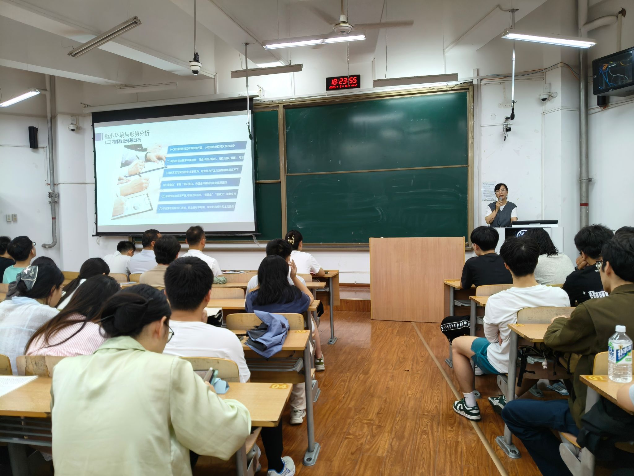 最后,闫小兵在总结发言中强调,站在大学最后一年的十字路口,面临着多重选择,也承载着多方期望。他对同学们提出几点希望:一是要认清形势,高度重视,充分认识最后学年规划的极端重要性。面对时间紧、任务重、选择多、压力大,需要投入巨大的精力和智慧。二是要明晰目标,精准定位,妥善处理多种选择之间的辩证关系。选择处理好学习与考研、考公、考编、创业、未来二战、就业之间的复杂关系,是走向未来的关键。三是要统筹兼顾,奋发有为,全力以赴争取毕业后的理想实现。面对多元选择,要学会“弹钢琴”,分清主次,合理分配时间和精力,边备考、边找工作两者兼顾是最优选择。同时,他强调全体毕业生还要以顺利完成学业为根本前提,同时注重提升综合竞争力,积极寻求外部支持,保持积极乐观的心态,通过不懈奋斗,实现青春理想。(撰稿:张苹 审稿:赵勇进、闫小兵)